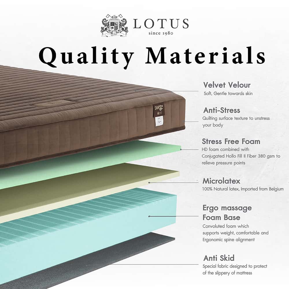 100% natural latex without chemicals imported from Belgium Let you experience pure relaxation that will open the opportunity to balance perfectly with the innovation of complete relaxation. Flexible with structure And effective weight distribution to break down the pressure of the body, which is a distinctive feature of 100% natural rubber, supports all body proportions correctly according to ergonomics. Helps to align the spine for hygienic sleep while increasing blood circulation to sleep that will complement your health in the long run. 100% natural latex can resist bacteria and dust mites accumulation.
